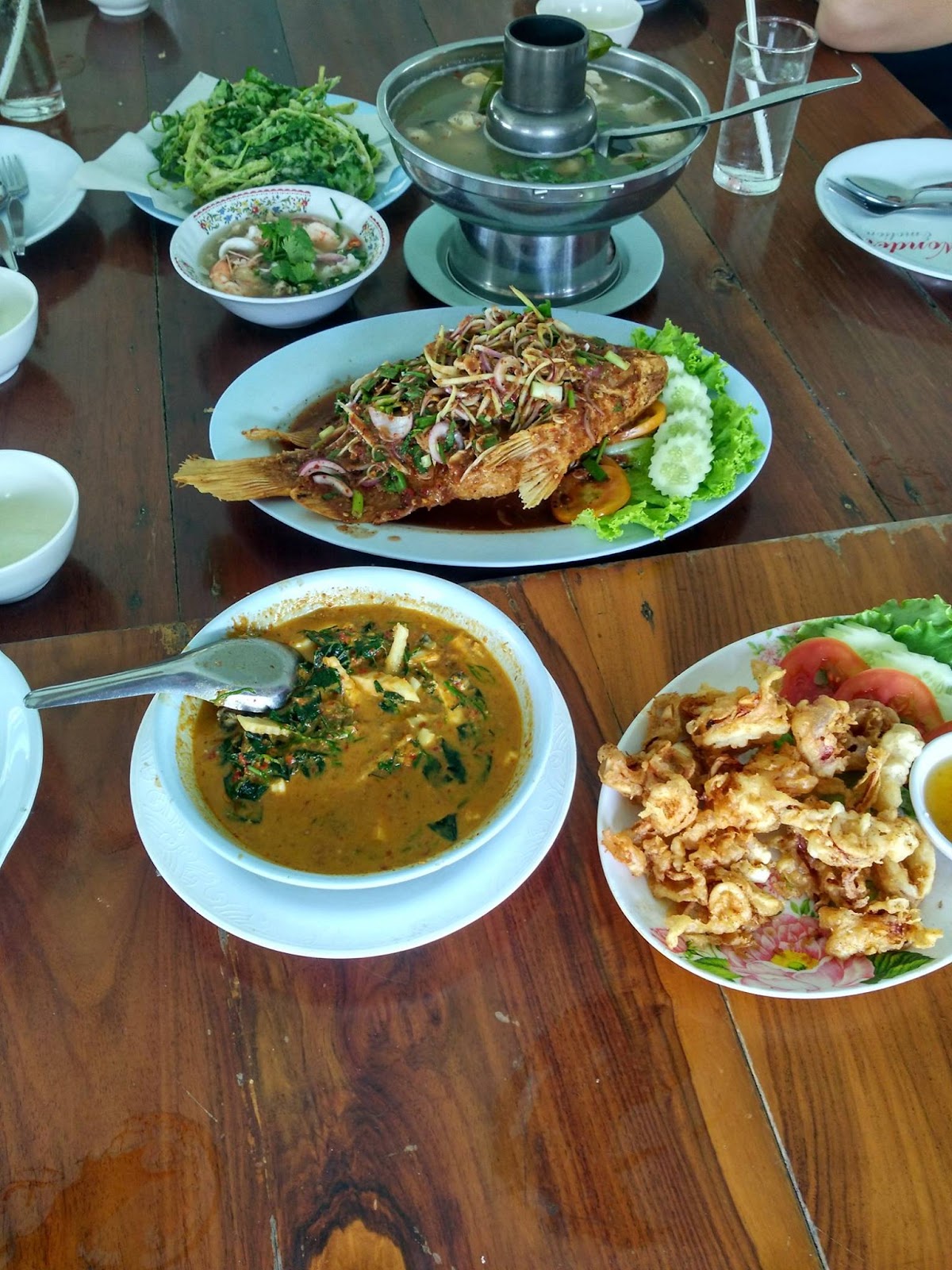 เพราะว่าออกเดินทางสายกว่าที่คิดเอาไว้ เลยต้องเปลี่ยนร้านอาหารสำหรับมื้อเที่ยง //วางแผนกันไว้ว่าจะไปกินไก่ย่างวิเชียรบุรีหนะ //อดแดร๊ก จริงๆอีกเหตุผล คือ เราเตรียมหมูย่างกันไว้สำหรับมื้อเย็น เลยกลัวว่าถ้ามื้อเที่ยงเป็นส้มตำไก่ย่างอีก จะเบื่อกันซะก่อน